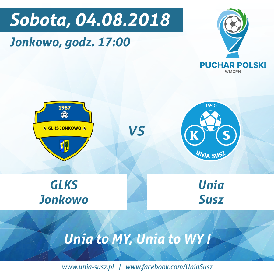Na sobotę 4 sierpnia o godzinie 17:00 zaplanowano mecz wojewódzkiego Pucharu Polski pomiędzy drużynami GLKS Jonkowo, a Unią Susz.